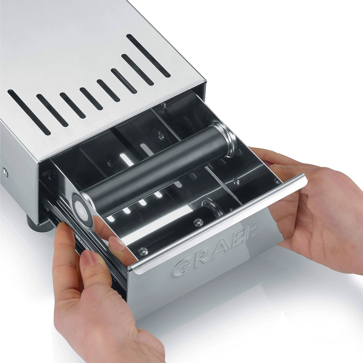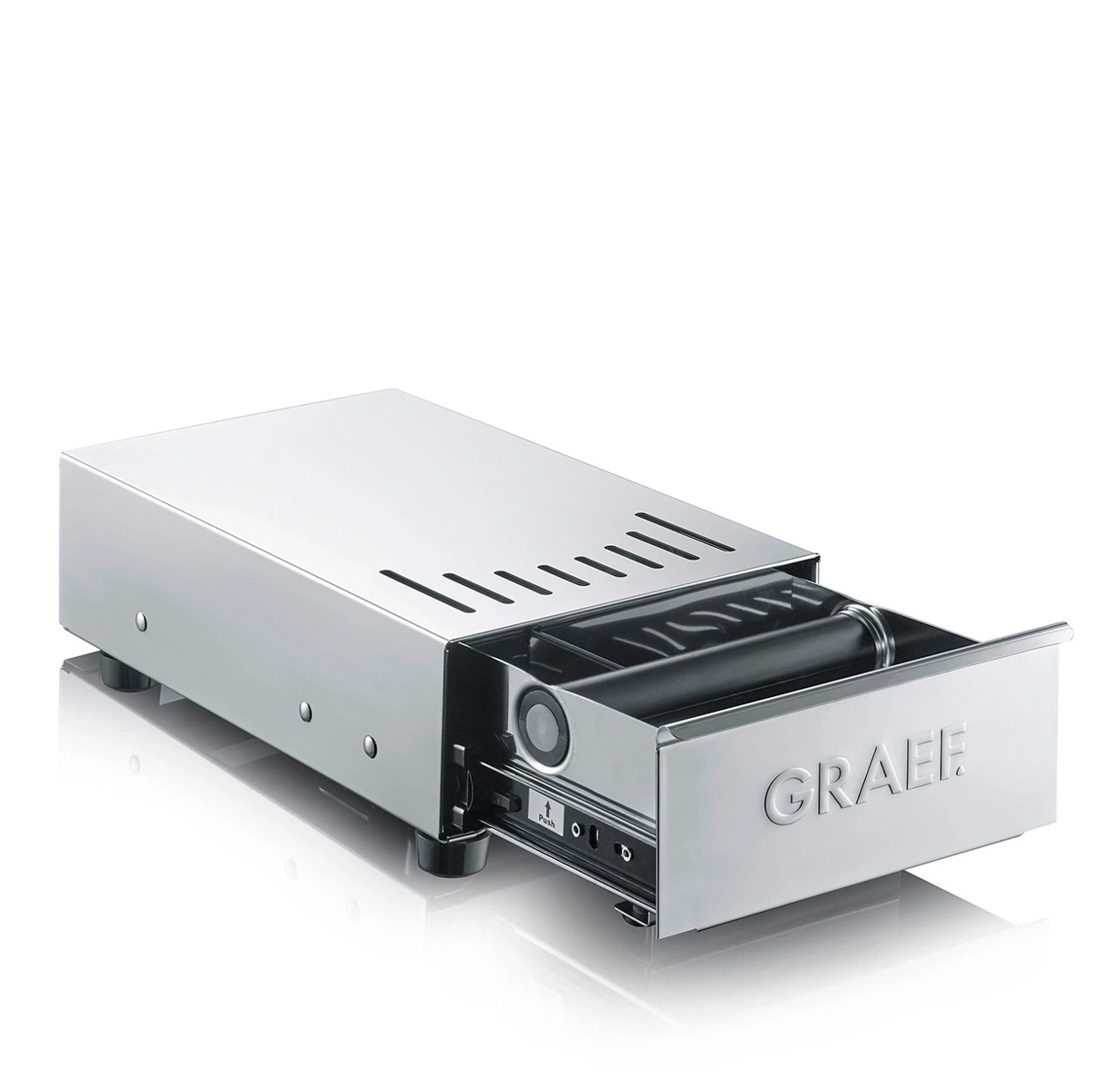 Die kompakte Graef Sudschublade „Pulito“ mit einer Aufstellfläche von B 17,0 cm x T 30,6 cm ist aus hochwertigem, poliertem Edelstahl gefertigt.