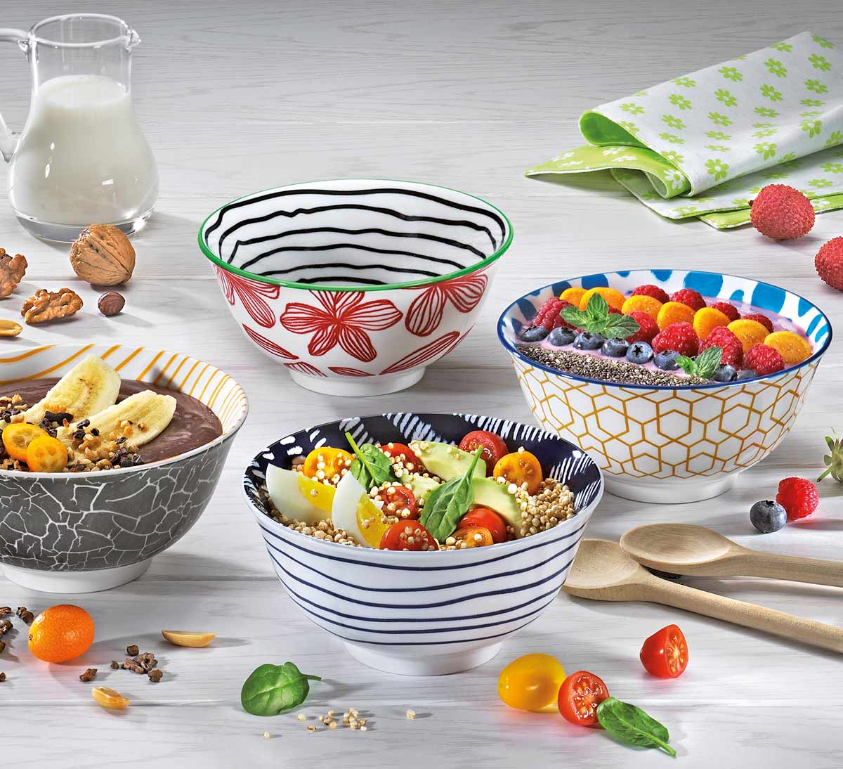 Die hochwertige Schüssel aus Porzellan ist vielseitig einsetzbar und wunderbar bunt. Bringen Sie Farbe auf den Tisch und wählen Sie aus den verschiedenen Designs das passende aus.