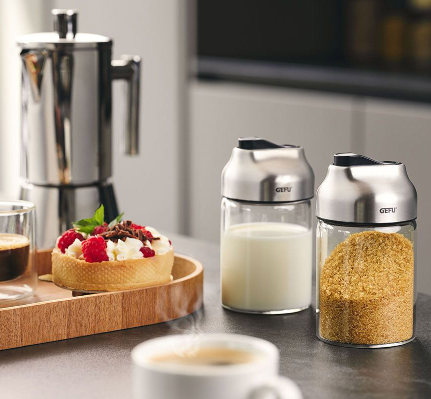 Sobald TIP zum Dosieren angesetzt wird, öffnet sich der clevere Wippdeckel und der Inhalt kann kontrolliert portioniert werden. Praktisch und stylisch für jede Kaffeetafel oder den Frühstückstisch.