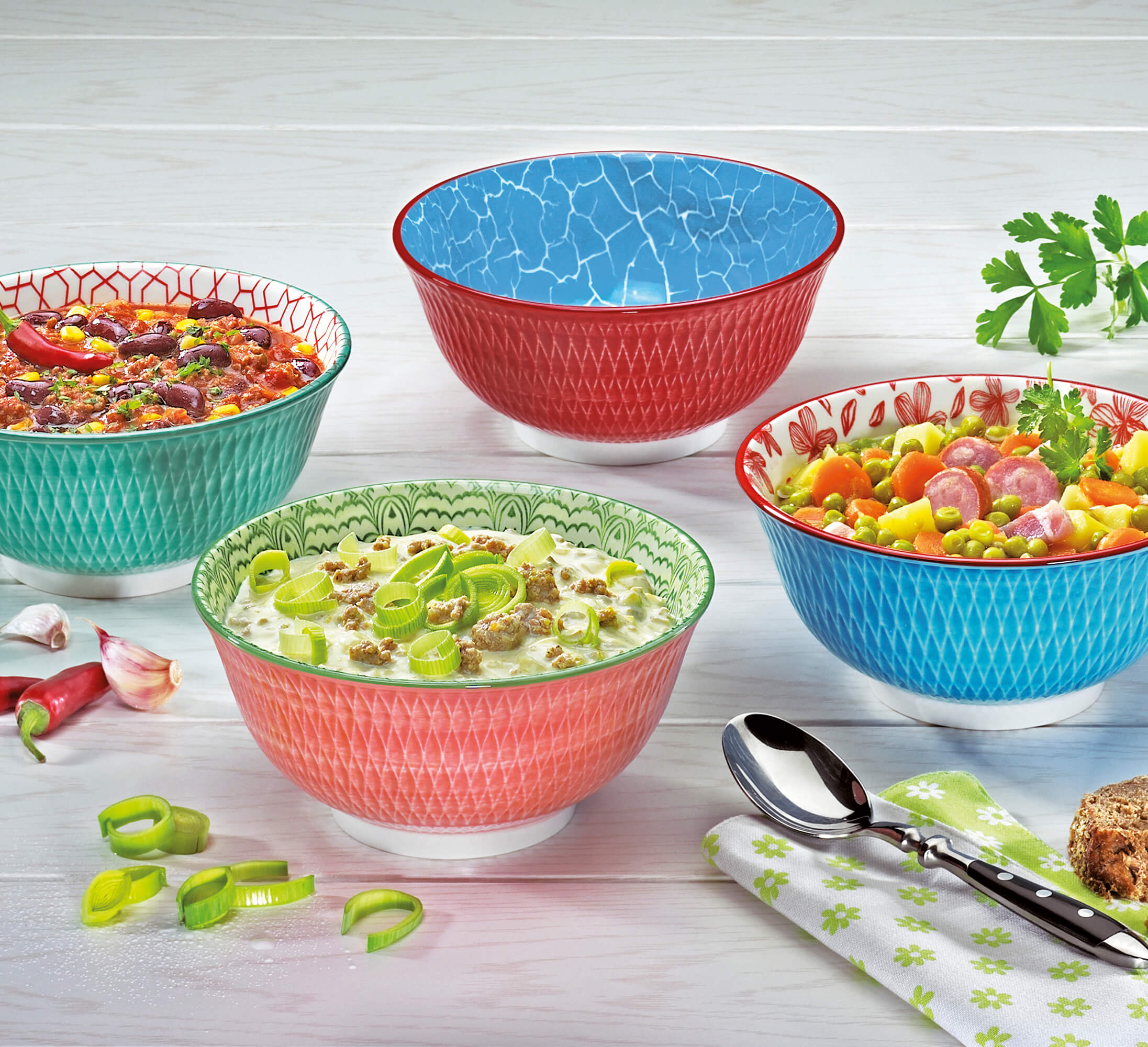 Für Freunde frischer Dekore. Die Bowl AMICI von cilio verbreitet rund um die Uhr gute Laune. Gefüllt mit Obst oder Cerealien macht sie beim Frühstück Appetit auf den Tag. Am Schreibtisch hält sie Nüsse für die schnelle Energie zwischendurch bereit. Als stilvolle Schüssel für die dampfende Ramen-Suppe sorgt die Bowl für Wohlgefühl und läutet den Feierabend ein. Beim italienischen Abend mit Freunden besinnt sie sich auf ihre Wurzeln und serviert mediterrane Köstlichkeiten von Aubergine bis Zucchini. Das bei circa 1.300 °C gebrannte Porzellan ist geeignet für die Spülmaschine und Mikrowelle.