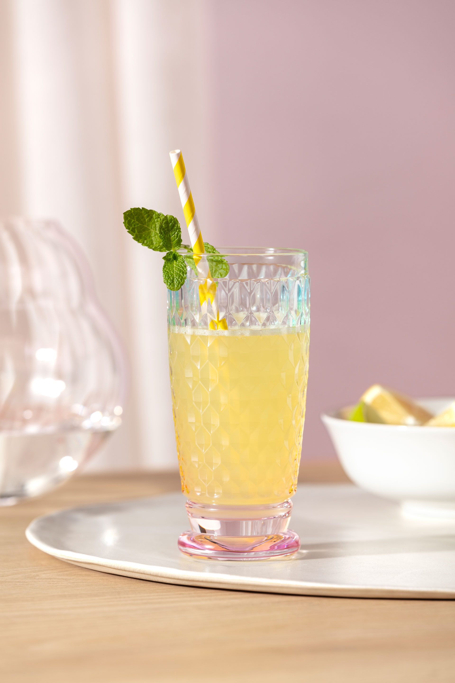 Ein ausdrucksstarkes Facettenmuster und das robuste, hochwertige Kristallglas machen die Kollektion Boston jeden Tag und zu festlichen Anlässen zu einem attraktiven Blickfang.Ein kühles Mineralwasser, ein frisch gepresster Saft oder Erfrischungsgetränke lassen sich in diesem Glas ansprechend servieren.Stillen Sie Ihren Durst auf die stilvolle Art.