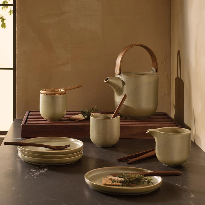 Besondere Effektglasur mit leicht metallischem Grünakzent, die bei jedem Brand im Ofen anders ausfällt. Jedes Teil ist ein echtes Einzelstück. Das seidenmatte Finish der Serie unterstreicht die reduzierte, edle Formensprache. Die große Formenvielfalt macht das Geschirr für den täglichen Gebrauch oder für festliche Anlässe einsetzbar. Jedes Teil wird aus hochwertigem Porzellan hergestellt, was das Geschirr besonders robust und für die Gastronomie geeignet macht.