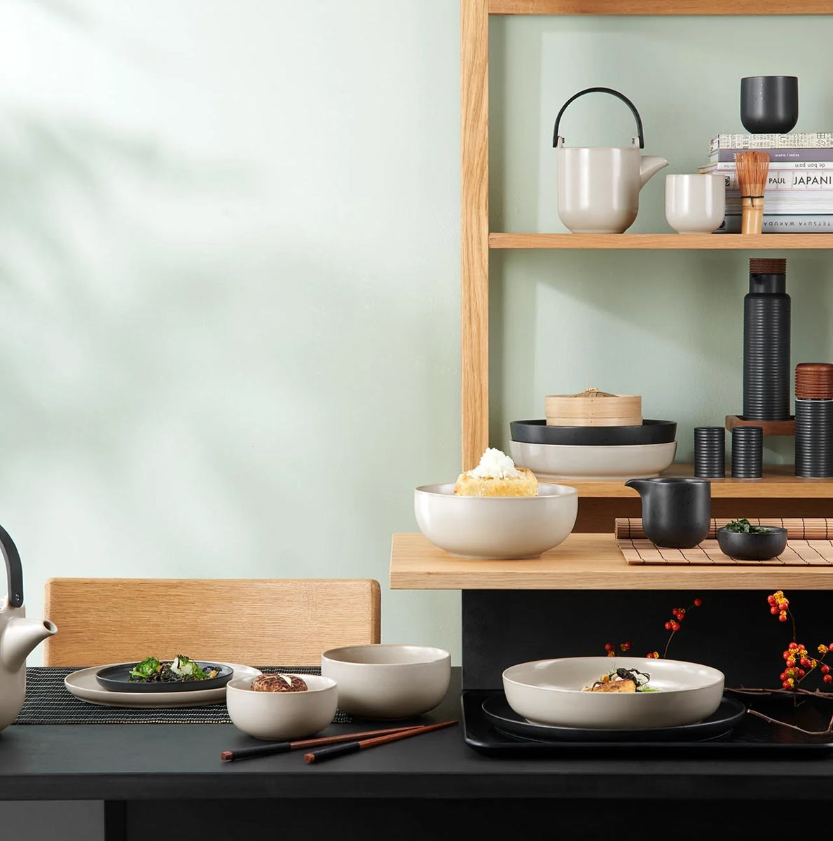 Inspiriert von der Vielfalt der asiatischen Küche fängt die zarte Glasur den subtilen Farbton von Tofu ein. Die leichte Reaktion am Rand sorgt für eine einzigartige Note, die jedes Stück zu einem individuellen Kunstwerk macht. Alle Teile dieser Serie werden aus hochwertigem Porzellan hergestellt. Das macht die Serie besonders robust und auch für die Gastronomie geeignet.