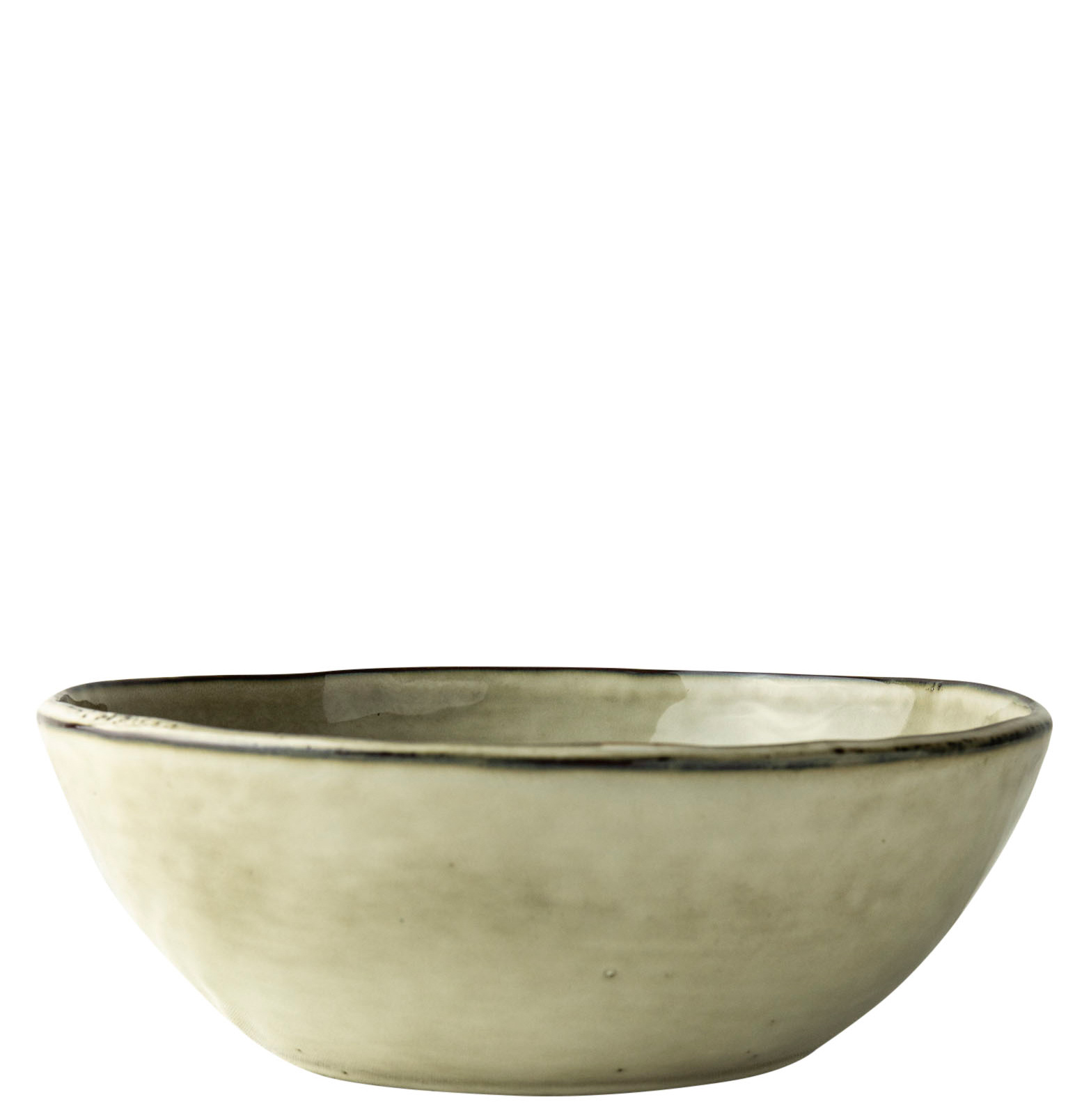 Geschirr mit einer unverfälschten Optik. Die einzelnen Teile sind aus Steingut gefertigt. Dadurch besticht das Geschirr durch die Festigkeit und Haltbarkeit von Porzellan, kombiniert mit der warmen Ausstrahlung von Töpferwaren. Die unregelmäßigen Formen und die spezielle Glasur sorgen bei jedem Artikel für dezente farbliche und haptische Unterschiede.