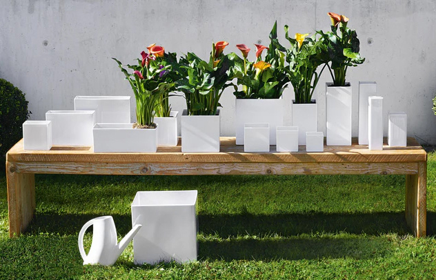 Weiße viereckige Vase aus glänzender Keramik. Die Quadro Vase mit den Maßen 11,5 x 11,5 ist 21 cm hoch. Damit passen die meisten Sträuße in diese stylische, aber dennoch zurückhaltend designte Vase. Sie kann auf dem Tisch arrangiert werden, oder auch auf einem Regal oder Sideboard. Diese Vase kann für sich alleine stehen, oder neben einer weiteren unserer Quadro Vasen!