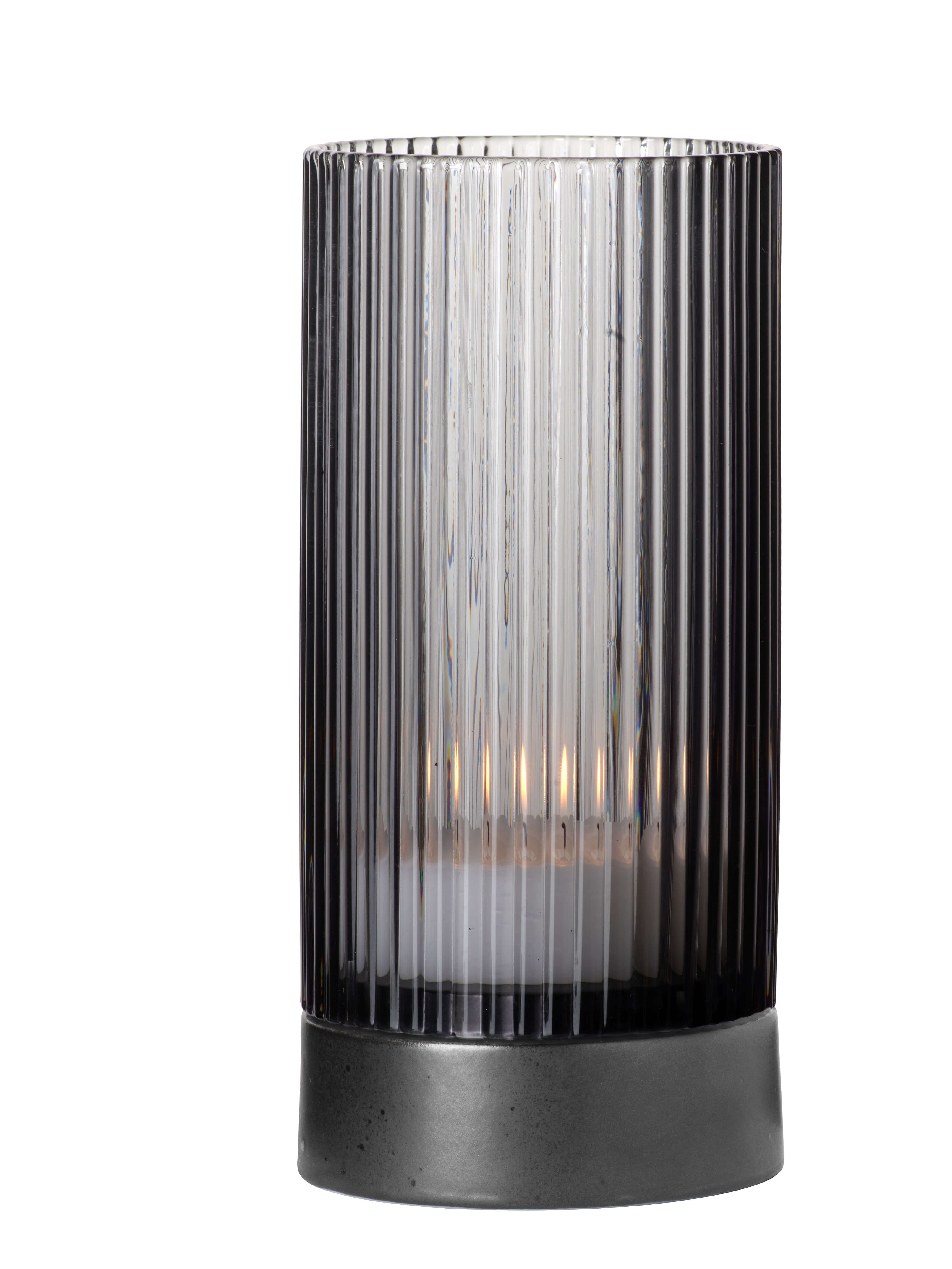 Windlicht aus leichtem Borosilikatglas mit Porzellanfuß. Das gerillte Oberflächendesign sorgt für funkelnde Lichtspiele. Ebenso überzeugen die funktionalen Details. So sorgt der edle Porzellanfuß dafür, dass selbst die Hitze einer ausbrennenden Kerze keinen Schaden auf dem Tisch anrichten kann.