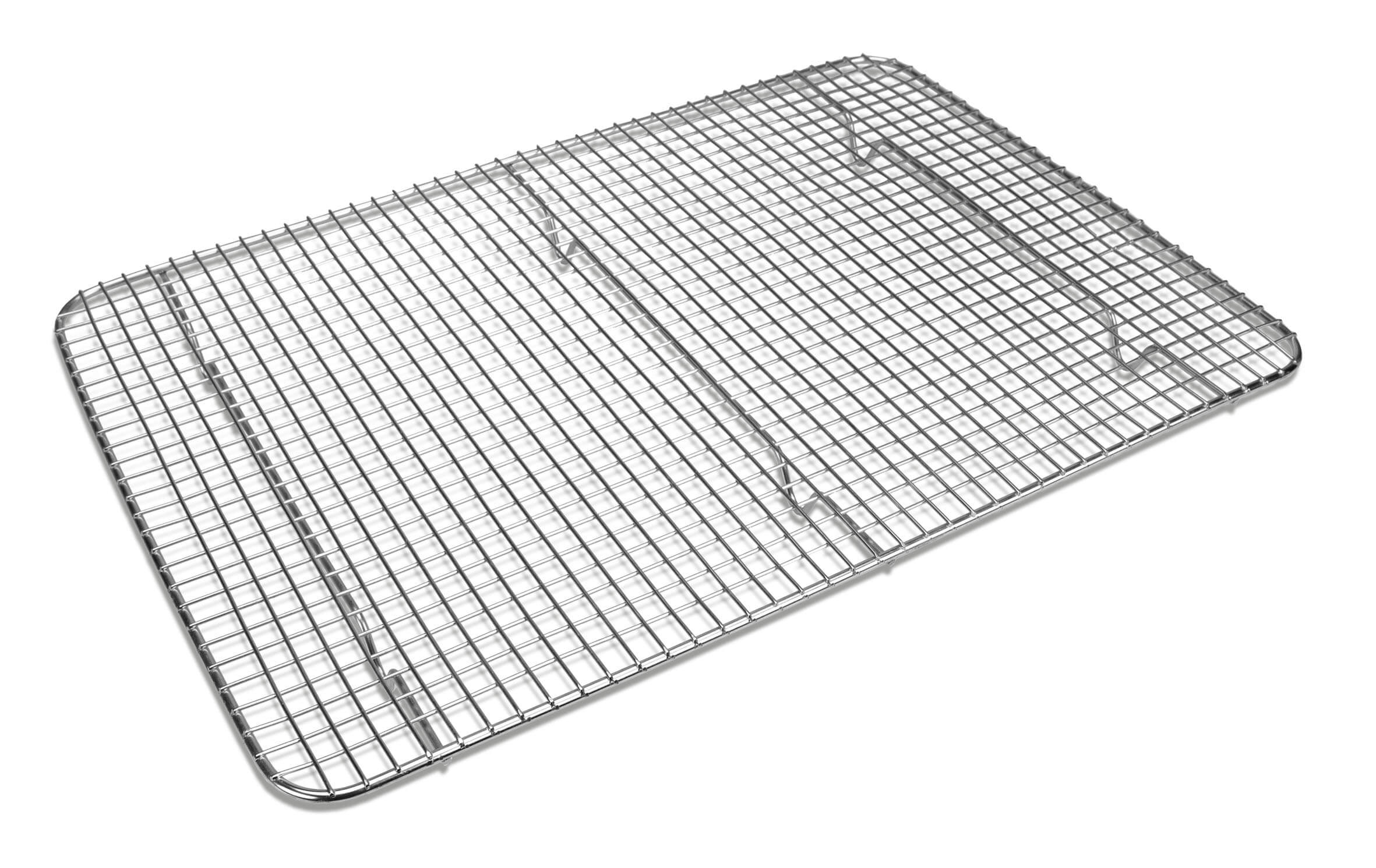 Das Kühl- und Tortengitter mit rechteckiger Grundfläche für das gleichmäßige Auskühlen und Trocknen frischer Backwaren. Nützlicher Helfer für das Auskühlen von Kuchen und Tortenböden, aber auch beim Dekorieren von Keksen und ausarbeiten von Pralinen. Überschüssiger Guss tropft auf die Arbeitsplatte und bleibt nicht am Gebäck hängen. Das Tortengitter ist aus hochwertigem Edelstahl gefertigt und kann in der Spülmaschine gereinigt werden. Wir empfehlen das Gitter per Hand mit weichem Tuch und mildem Spülmittel reinigen. Viele weitere nützliche Utensilien und Backzubehör finden Sie beim "Backzubehör" und bei den "Pralinen & Desserts".