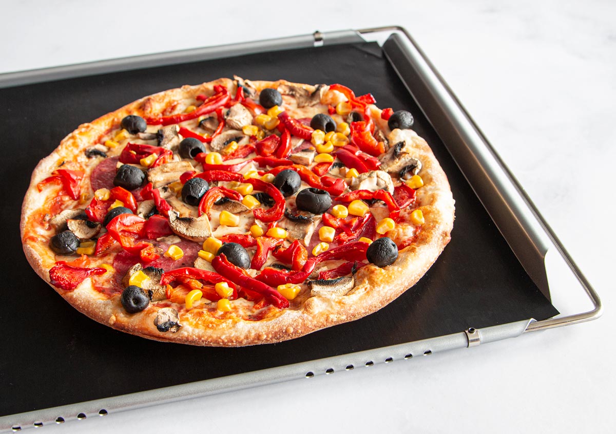 Problemloses Backen auch bei hoher Temperatur bis 260 °C. Die Folie ist ideal für Kleingebäck, Pizzen, Pommes Frites, Toasts, Mürbeteig-, Rührteig-, Hefeteig- und Biskuit-Böden, Weihnachtsgebäck usw. Für knuspriges, gleichmäßig braunes Gebäck. Verbesserter beidseitiger Top-Antihafteffekt. Kein Einfetten des Bleches erforderlich. Keine schmutzigen Bleche mehr. Für alle Backbleche & Backroste. Physiologisch unbedenklich, lebensmittelecht.