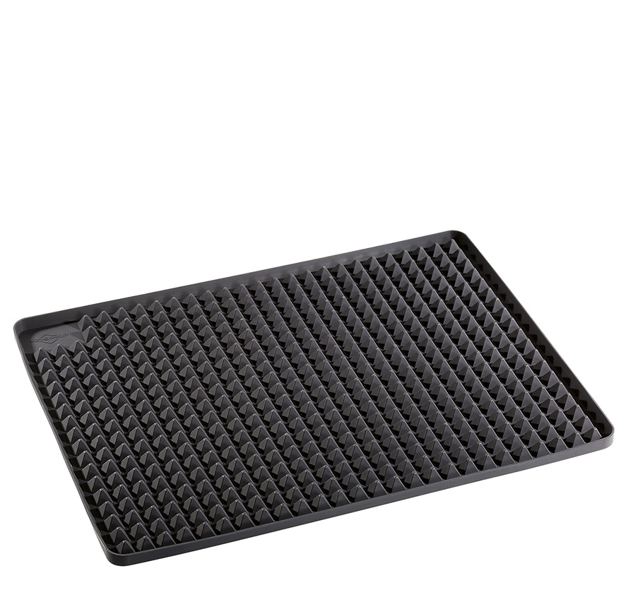 Hoher Knusperfaktor, wenig Fett. Genießer, die ihre Gesundheit im Auge behalten, bauen auf die Backofenmatte PYRAMIDE von KÜCHENPROFI Sie ist so konzipiert, dass die Luft gleichmäßig zirkulieren kann. Der Umluft-Effekt garantiert eine gleichmäßige Wärmeverteilung. Gemüse, Fisch, Fleisch, Geflügel und Ofenkartoffeln werden kross gebräunt, überschüssiges Fett läuft in die Vertiefungen ab. Die Backofenmatte verfügt über hervorragende Antihafteigenschaften; Einfetten und Wenden Ihres Bratguts können Sie sich sparen. Als wiederverwendbare Alternative zu herkömmlichem Backpapier ist sie auch in Sachen Nachhaltigkeit ein heißer Tipp.