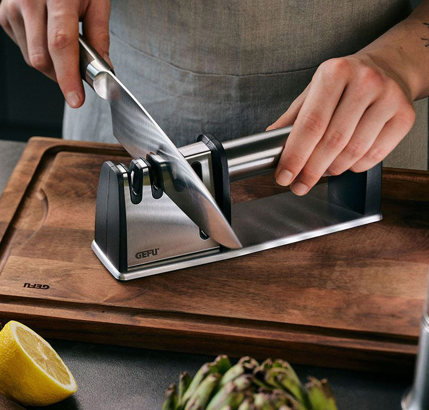 Scharfer Typ: Mit dem cleveren 4-in-1-Messerschärfer COLT PRO werden die Klingen von Messern und Scheren wieder richtig scharf. Vorbereiten, Schärfen und Feinschliff in nur einem Gerät.