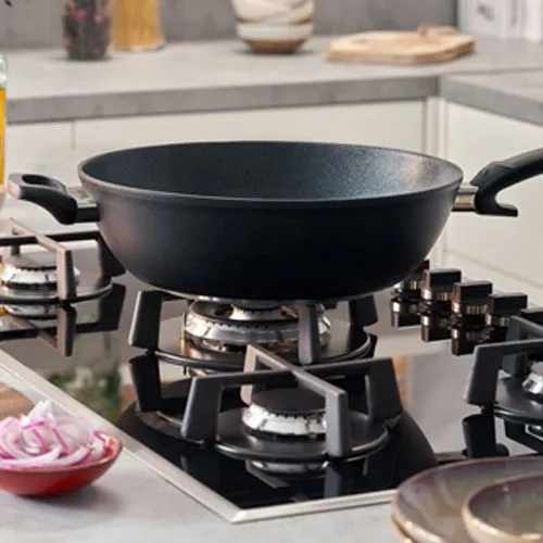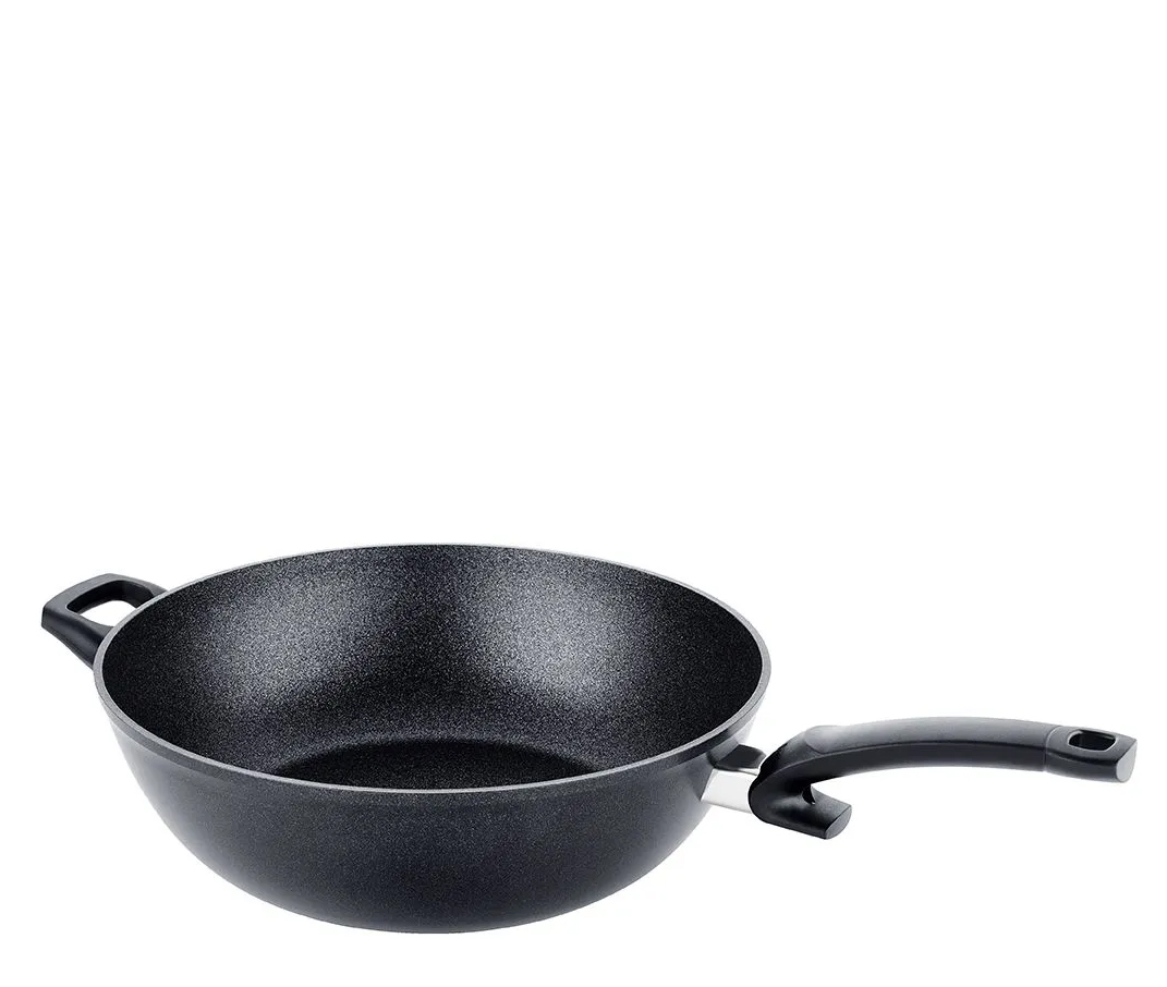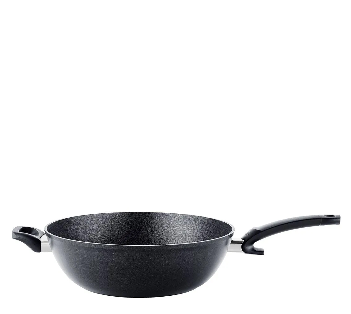 - Fissler Wok mit abgerundeter Form und extra hohem Rand für komfortables Schwenken und kleckerfreies Rühren
