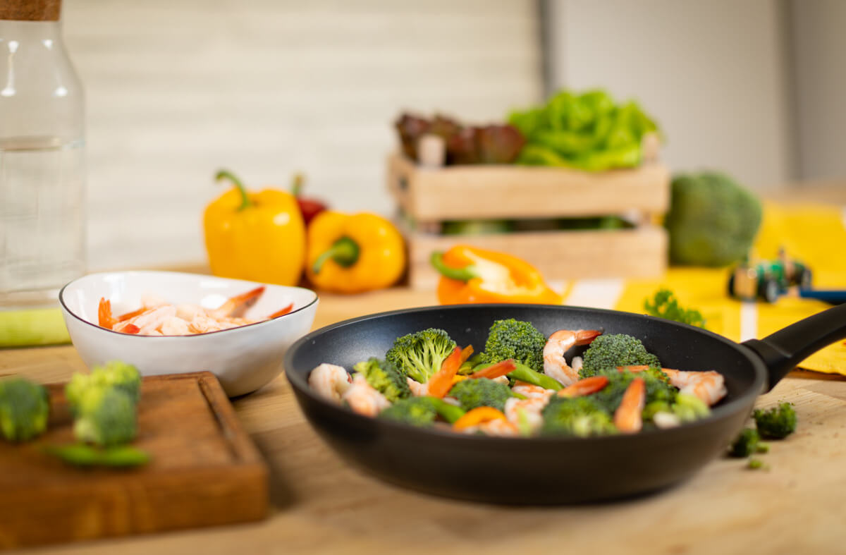 Die Bratpfanne ist ideal für schonendes und fettreduziertes Braten von Gemüse, Kartoffeln, Fisch, Eierspeisen und Geflügel.