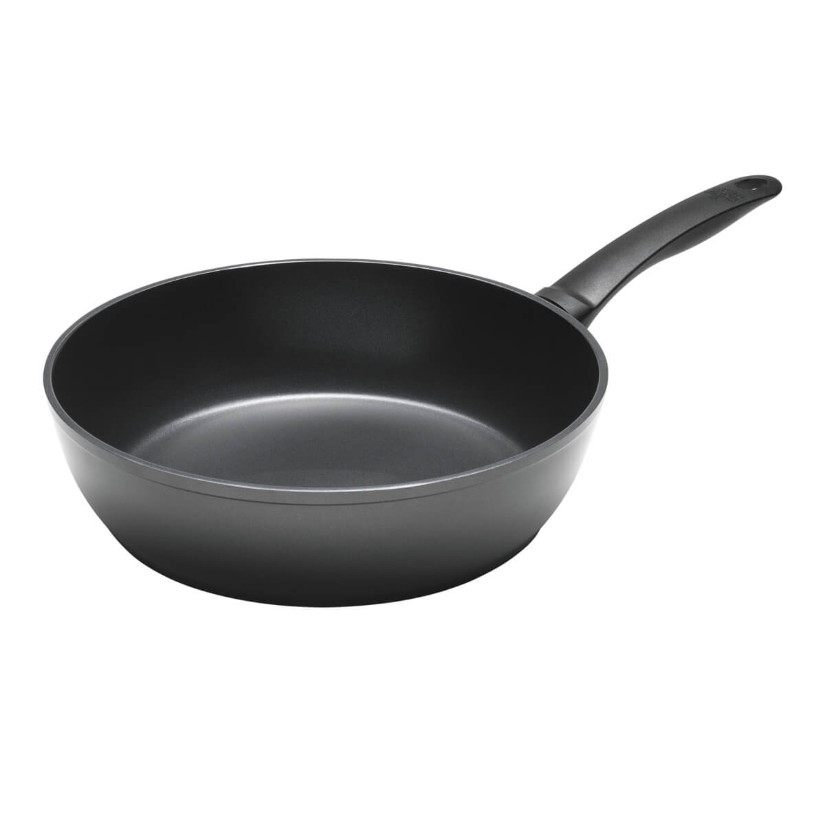 Mit dem hohen Rand eignet sich diese EASY INDUCTION Serie besonders für grosse Mengen von Eintöpfen oder für das anbraten von Fleisch und anschliessendem aufkochen einer Sauce, wie zum Beispiel "Zürcher Geschnetzeltes". Dank des geschmiedeten Aluminiums bleibt die Pfanne trotz ihrer grossen Höhe sehr handlich und ist für den täglichen Gebrauch bestens geeignet. Dank ihrer mit Titan - Partikeln verstärkten 3 - lagigen Antihaftbeschichtung überzeugt diese Serie durch ihre Langlebigkeit und der erhöhten Verschleissfestigkeit..