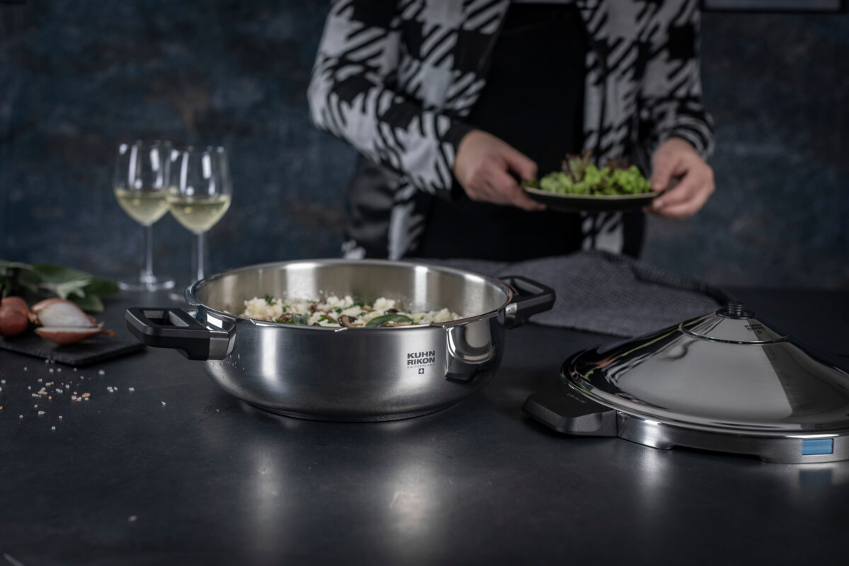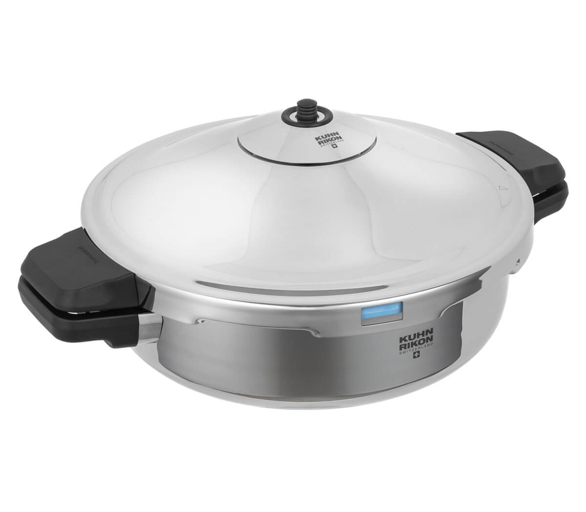 Schnellkochtopf für Profis. Den formschönen Klassiker aus Edelstahl 18/10 gibt's auch für Grossanlässe und die Gastronomie. Perfekt für Profiköche, die Kochen unter Druck gewöhnt sind und die schnelle und schonende Zubereitung im Schnellkochtopf zu schätzen wissen. Mit dem Waffelboden dieses Modells können Sie ohne Zugabe von Fett, Fleisch braten und sautieren. Bei den Schnellbratpfannen ist kein Siebeinsatz dabei.