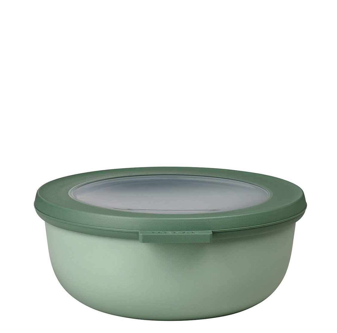Multischüssel Cirqula 750 ml in der Farbe Nordic sage. Diese grüne Schüssel mit einem Inhalt von 750 ml ist ideal für das Aufbewahren und den Transport von Gemüse (frisch oder bereits zubereitet). Die Cirqula Serie von Mepal wurde speziell für einen vollständigen ‚Circle of Use‘ entwickelt. Vom Aufbewahren von Mahlzeiten im Kühl- oder Gefrierschrank, dem Erwärmen in der Mikrowelle (ohne Deckel) und dem Servieren (direkt) auf den Tisch. Die Cirqula besteht aus unzerbrechlichem Material und das Sichtfenster im Deckel zeigt immer den Inhalt der Schüssel. Der innovative glatte Deckel ist zudem luftdicht und auslaufsicher. Das Essen bleibt daher länger frisch, kann perfekt aufbewahrt und transportiert werden. Die Mepal Cirqula Schüsseln sind praktisch und einfach zu verstauen, lassen sich mit Deckel ordentlich übereinander oder platzsparend ineinander stapeln.