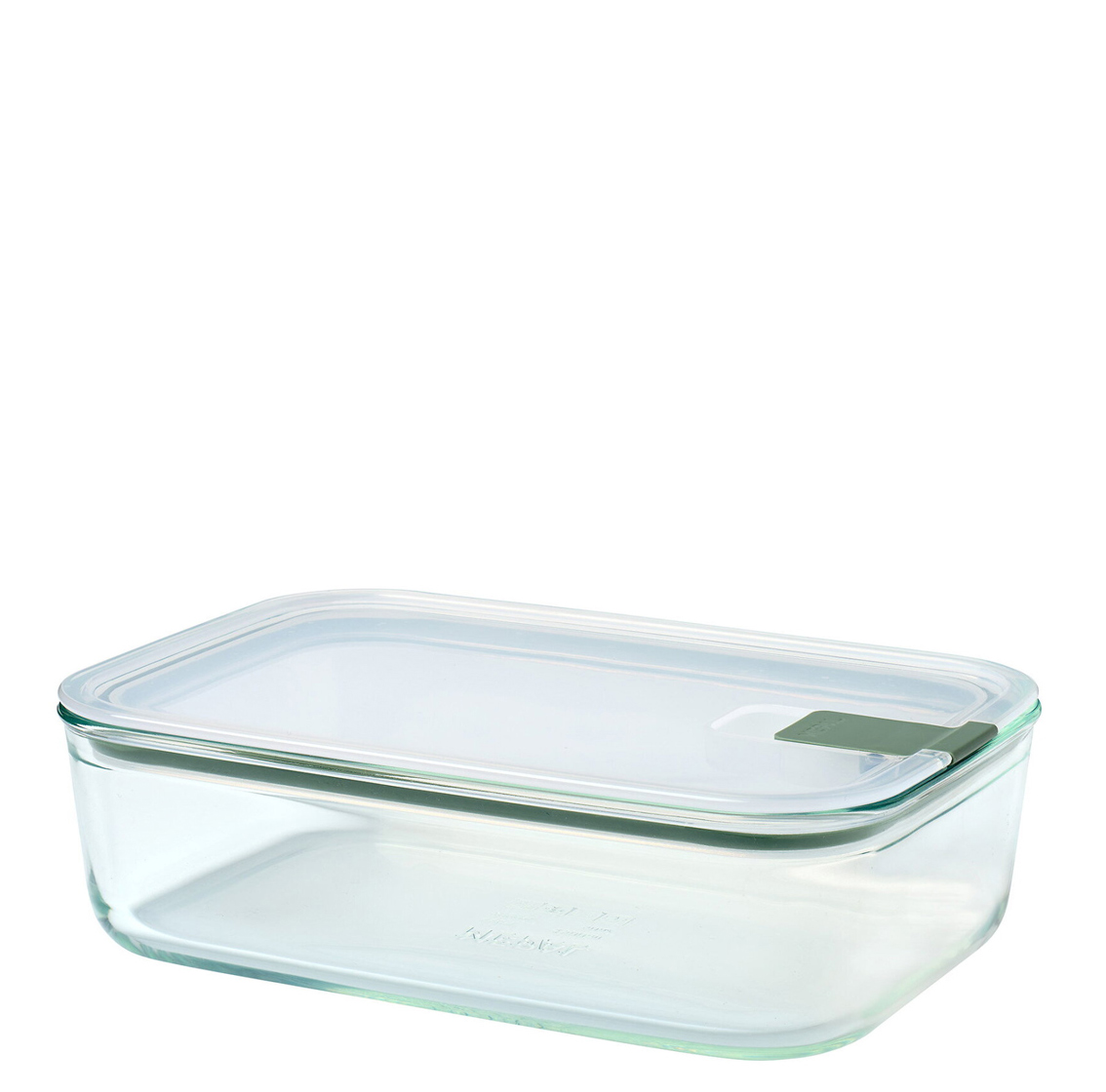 Die gläserne Auflaufform der Frischhaltedose EasyClip mit Deckel hat einen Inhalt von 1500 ml und erfüllt alle Anforderungen in der Küche. Wie wär's mit einem leckeren BBQ an einem sonnigen Tag? In dieser Frischhaltedose kannst du Fleisch, Fisch oder Gemüse ganz einfach im Vorhinein marinieren und im Kühlschrank aufbewahren. Mit nur einem Klick lässt sich die Glasschale mit dem Deckel aus hochwertigem Kunststoff auslaufsicher und luftdicht verschließen. Klick, dicht & aufbewahrt! Die ofenfeste Schale aus gehärtetem Borosilikatgas hält Temperaturen von bis zu 550°C stand, so kannst du sie auch auf dem Grill, im Backofen oder in der Heißluftfritteuse verwenden. Und möchtest du schnell noch etwas in der Mikrowelle aufwärmen? Dabei kannst du die Frischhaltedose auch mit dem Kunststoff-Deckel verwenden. Öffne dazu einfach den Verschluss-Clip mit dem patentierten Lüftungsventil im Deckel. Das durchdachte Design dieser Aufbewahrungsheldin für die Küche ermöglicht Übersicht und Ordnung im Kühlschrank oder Tiefkühler. Und auch dank des transparenten Deckels siehst du zudem immer auf einen Blick, was sich im Inneren der Dose befindet.