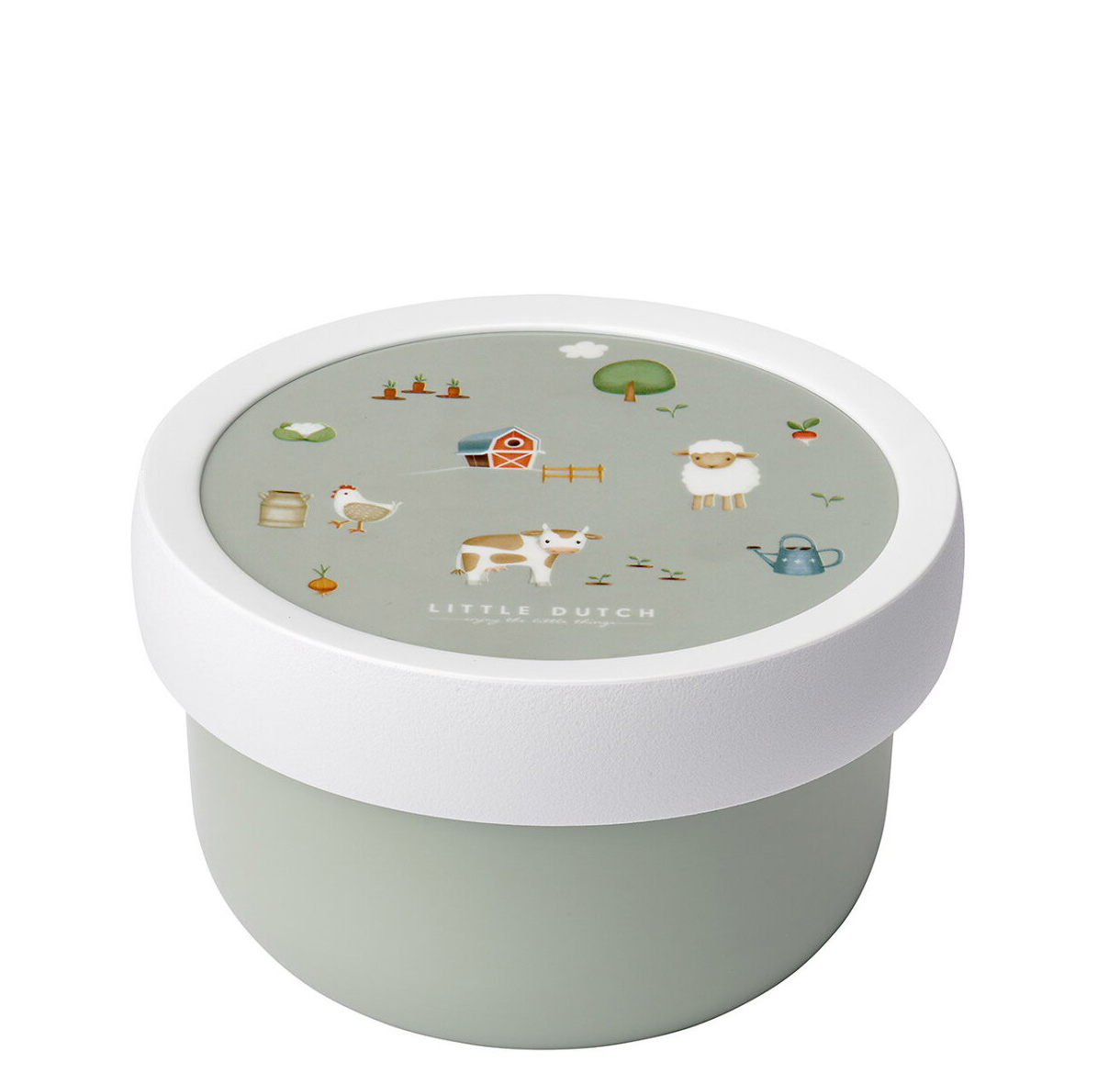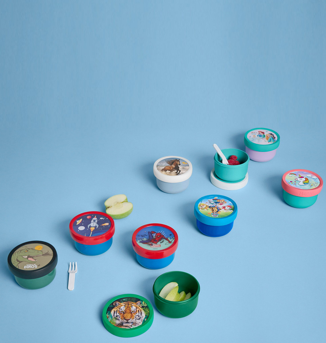 Die Obstbox mit dem Lieblingsmotiv des Kindes macht das Mitnehmen von Obst und Gemüse zum Kinderspiel. Auslaufsicher und von kleinen Händen leicht zu öffnen. Die Box kann ohne Deckel in die Mikrowelle gestellt werden. Die herausnehmbare Gabel sorgt dafür, dass die Kinder ihr schmutzfrei Essen genießen können. Die Obstbox vervollständigt das Pausenset.