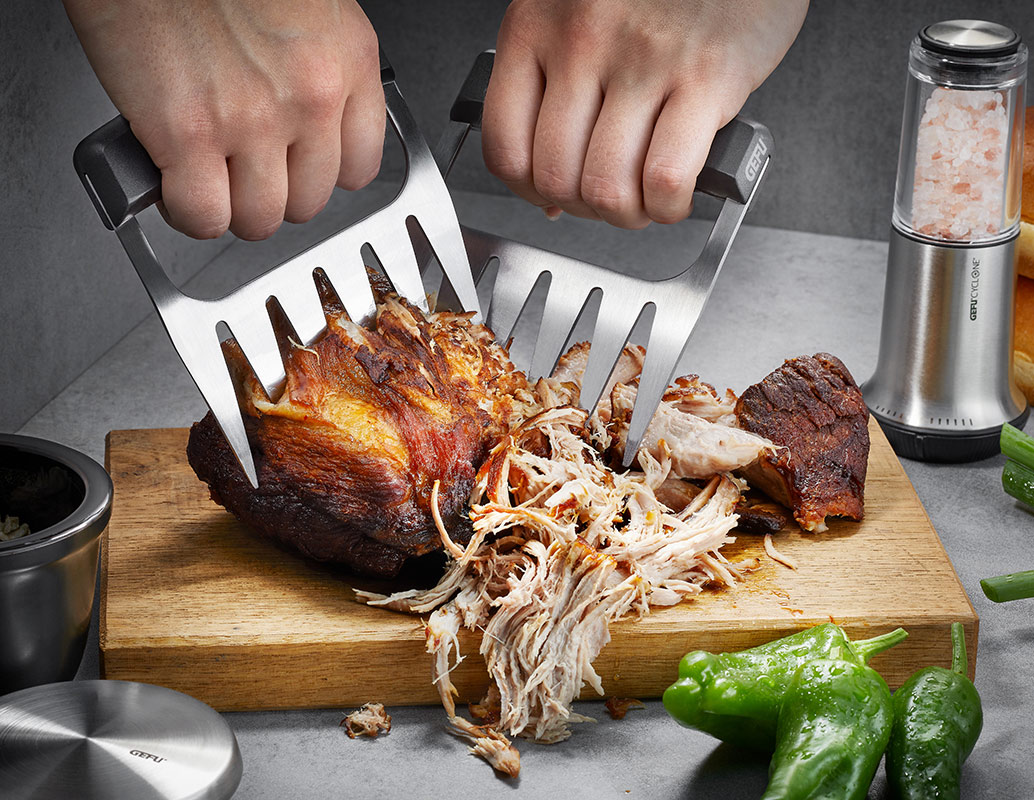 Bärenhunger auf Pulled Pork? Mit diesen robusten Fleischkrallen gelingt das Greifen, Zerkleinern und Zerreißen von saftigem Grillgut wie Schweine-, Rindfleisch oder Geflügel perfekt und macht dazu auch noch richtig Spaß. Das perfekte Geschenk für jeden Grillfan.