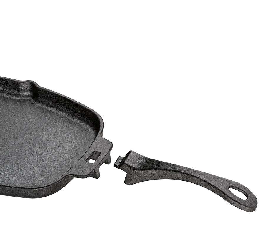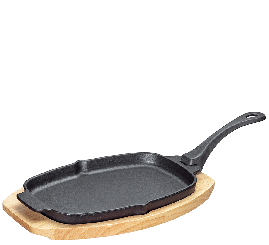 Die stilvolle und nachhaltige Lösung für Ihren nächsten Grillabend. In der BBQ Grill-/Servierpfanne mit Holzbrett von KÜCHENPROFI bereiten Sie kleinere Speisen und Beilagen wie Meeresfrüchte, Ziegenkäse mit Honig und Rosmarin oder knackiges Gemüse schonend zu. Die Marinade bleibt auf dem Grillgut, nichts tropft in die offene Flamme. Die Pfannen aus wärmespeicherndem Gusseisen halten die Speisen lange warm. Sie sind solide verarbeitet und eine umweltfreundliche Alternative zu Alu-Einwegschalen. Spielt das Wetter nicht mit, kommen die BBQ Grill-/Servierpfannen auf den Herd. Sie sind geeignet für alle Herdarten und dürfen natürlich auch in den Backofen. Wenn Sie eine Grillpfanne mit Zucchini, Paprika, Tomaten und Knoblauch füllen, Schafskäse darüber krümeln und ein frisches Baguette dazu reichen, kommt selbst ohne Sonne mediterrane Stimmung auf. An dem stabilen Griff transportieren Sie die Grillpfanne, das Brett aus Pinienholz ist ideal zum stilvollen Servieren. Clever: Eine Mulde im Brett hält die Pfanne sicher.