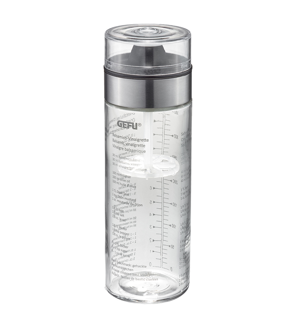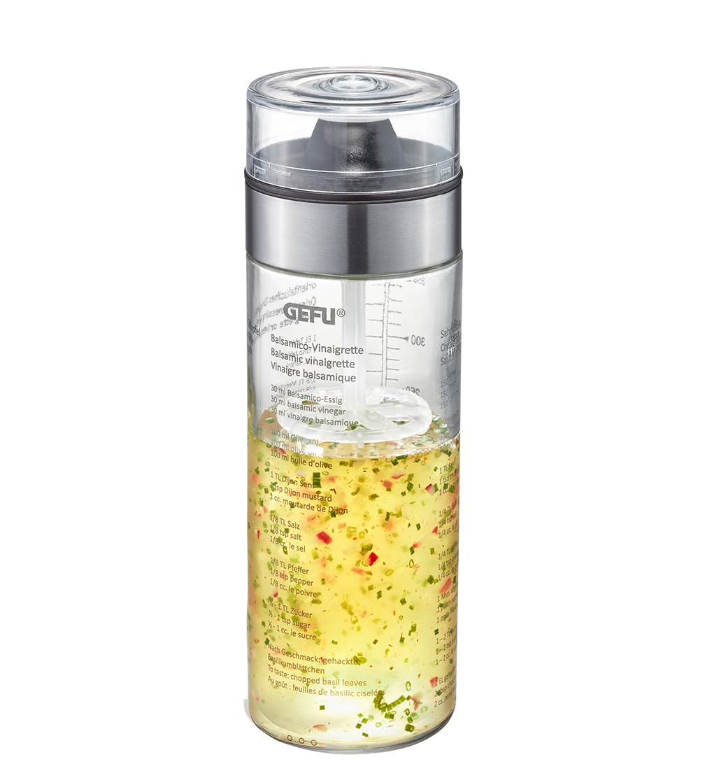 Mit dem Dressingshaker gelingen selbstgemachte Salatdressings besonders schnell und einfach. Sein integrierter Topquirl garantiert optimale Mischresultate.