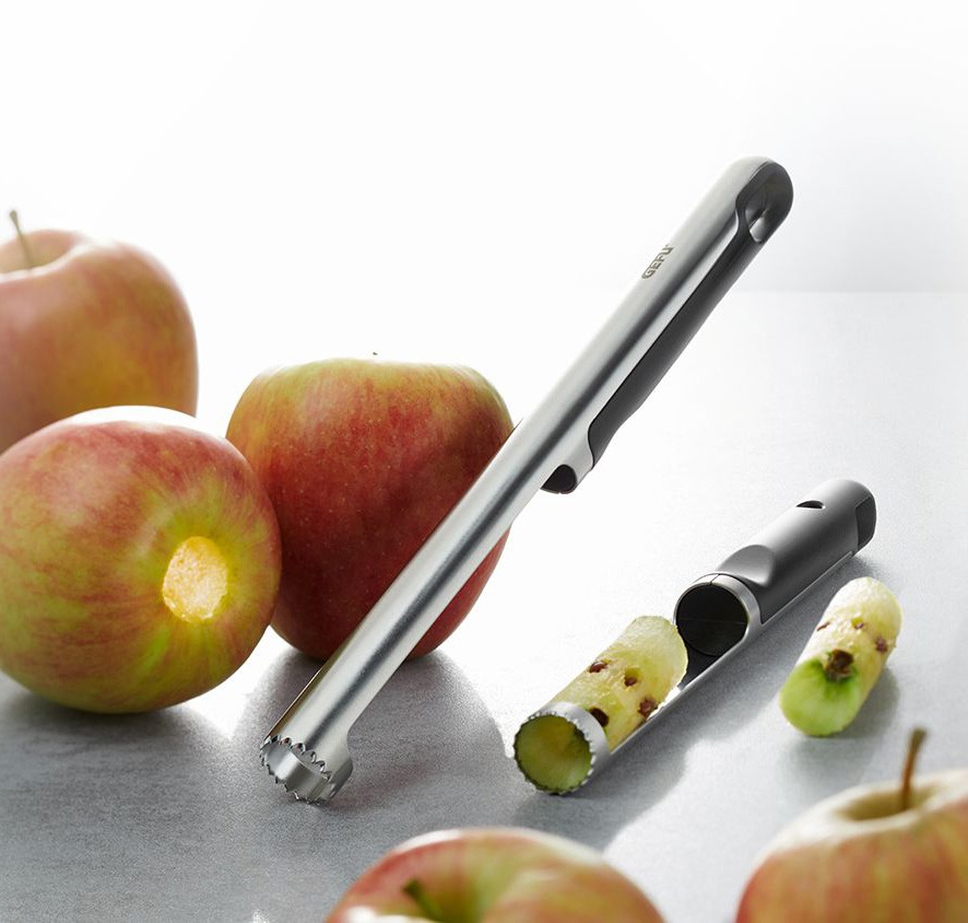 So schnell waren Äpfel noch nie ihre Kerne los. PIT verfügt über besonders scharfe Zähne, die sich mühelos durch jeden Apfel bohren. Seine ungewöhnlich lange, offene Edelstahlspitze eignet sich selbst für große Apfelsorten und macht das saubere Entfernen der Kerngehäuse besonders einfach.