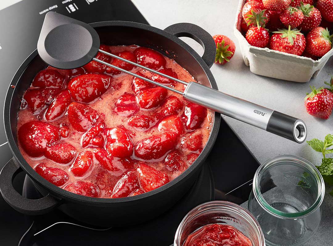 So sauber waren Töpfe und Pfannen noch nie: dank der praktischen Kunststoffspitze des Löffels ist das schonende Auskratzen auch bei beschichtetem Kochgeschirr endlich kein Problem mehr.