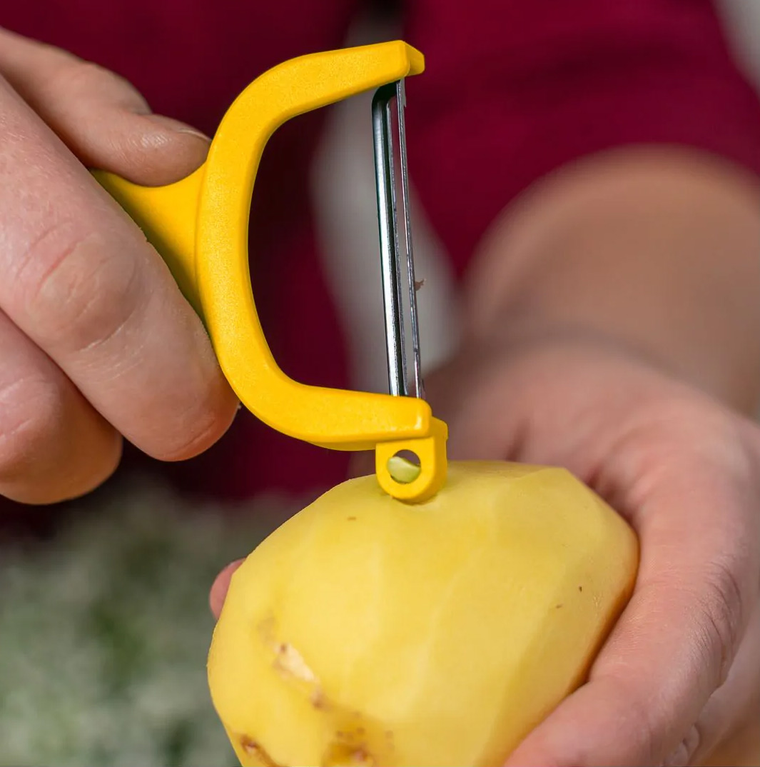 Lassen Sie sich von seiner geringen Grösse nicht beirren. Unser Sparschäler ist ein ganz grosses Talent. Seine superscharfe Klinge aus Karbonstahl schneidet besser als Schäler, die das Drei- oder Vierfache kosten.
