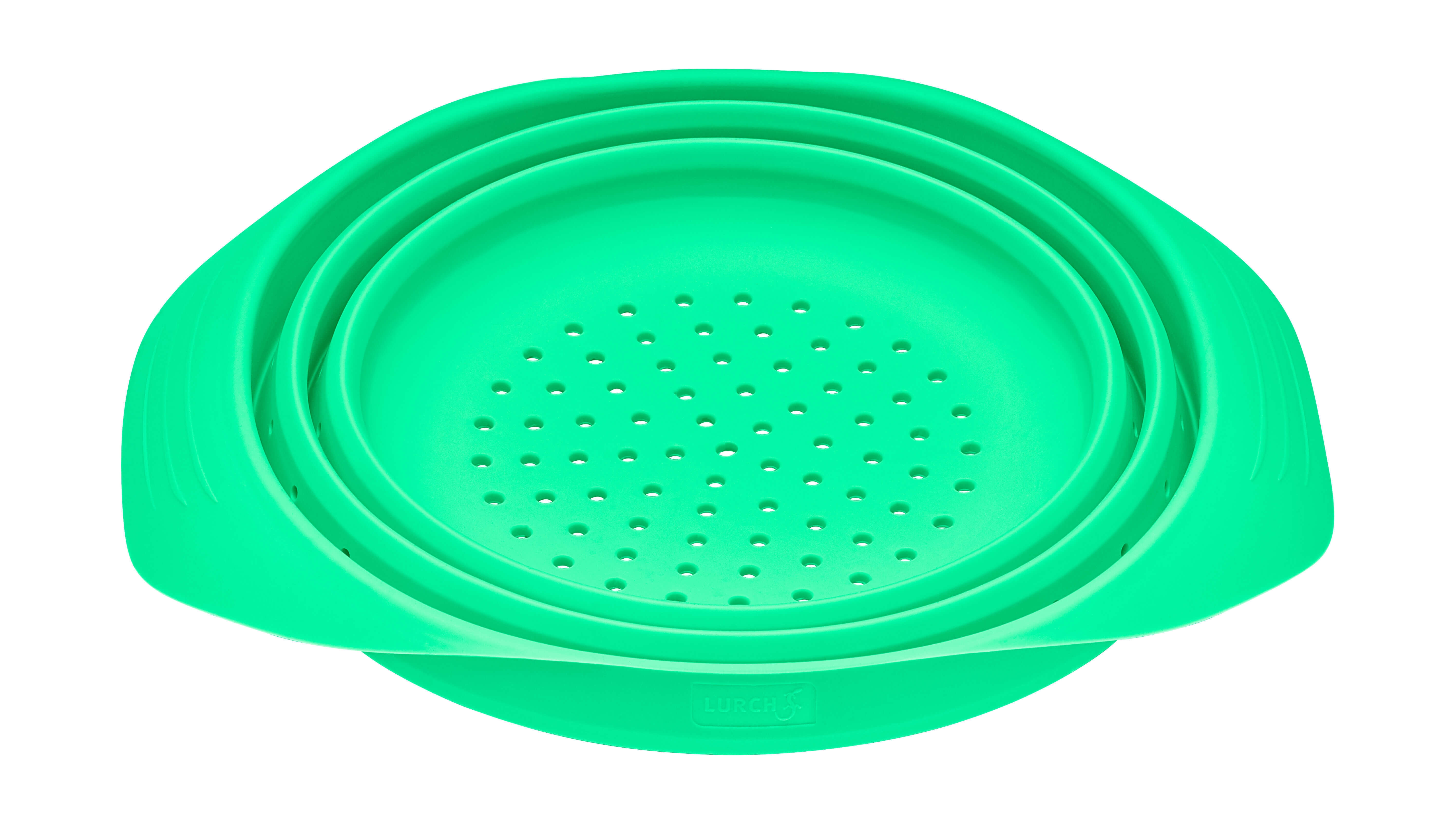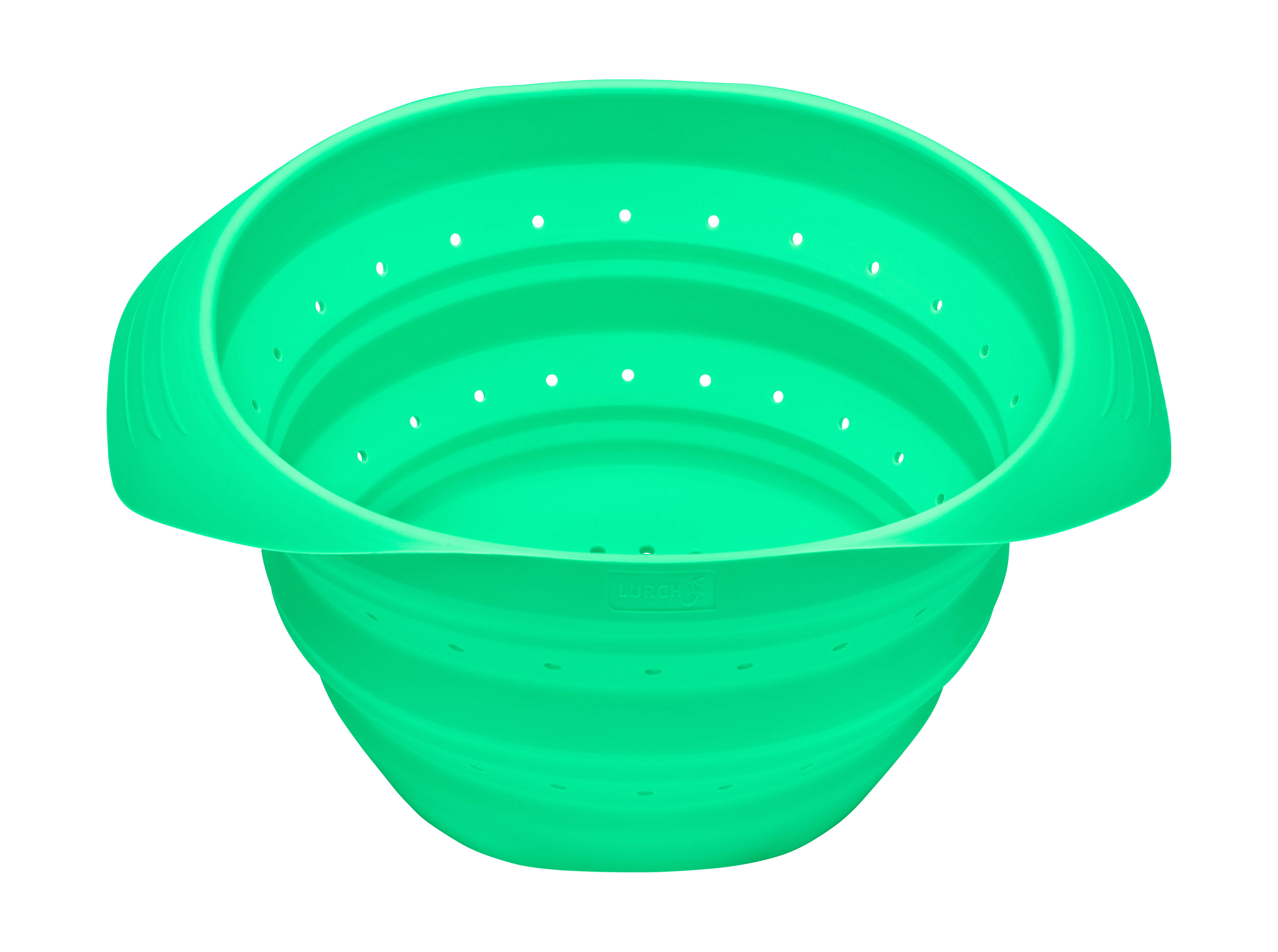 Das Faltsieb ist aus Premium-Platin-Silikon und bis 240°C temperaturbeständig. So kannst du es wunderbar für heiße oder kalte Lebensmittel nutzen, Kartoffeln oder Nudeln abgießen und Salat, Gemüse oder Obst abwaschen. Sogar zum Dampfgaren ist es geeignet.